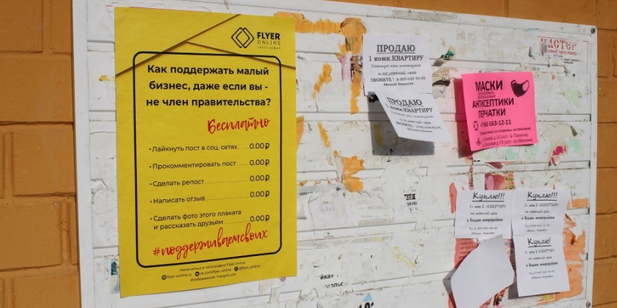 Типография Flyer-Online из Нижнего Новгорода расклеивает плакаты в поддержку малого бизнеса