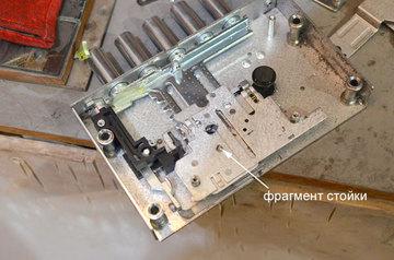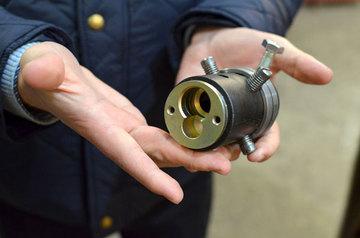После этого испытатели приступили к сверлению стойки засова. Сверло достаточно быстро дошло до бронепластины толщиной 5 мм, потом процесс сильно замедлился, несмотря на то, что использовались твердосплавные свёрла, предоставленные Неманом, и показавшие на предварительных испытаниях бронепластины в тисках достаточно хороший результат. В ходе сверления сломалось три сверла. Затем была высверлена стойка, но манипуляции крючком с целью перемещения засова оказались безрезультатными. Я предложил прекратить испытания, признать их неудачными, снять и разобрать замок. Разобрали. Оказалось, что кусочек разрушенной стойки засова попал между сувальдами, и заклинил замок. Проверка хода тяги на оставшемся фрагменте двери показала, что блокировка оказалась успешно нейтрализованной: несмотря на затирание тяга могла перемещаться.