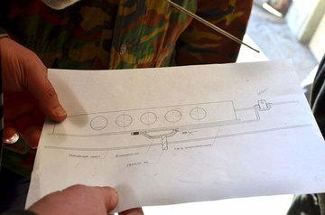 Для нейтрализации устройства блокировки в наружном листе фрагмента было просверлено 3 отверстия диаметром 10 мм, а потом, тем же сверлом, удалены перегородки между ними. В результате образовалось отверстие, через которое испытатели вставили в устройство блокировки гибкую пластину (кусок ленты от рулетки), которая должна была стать направляющей, вдоль которой тяга смогла бы перемещаться после срабатывания блокировки.