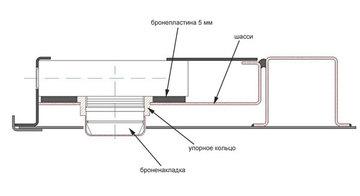 Упорное кольцо, запрессованное на броненакладке, служит для того, чтобы препятствовать извлечению броненакладки, например, в случае высверливания винтов
